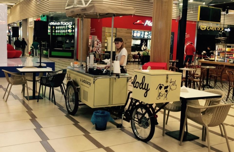 Jeszcze fajną rzeczą, która okazała się totalnym hitem, była riksza lodowa. Taka budka na kółkach, w której są schowane cztery pojemniki na cztery smaki lodów, a obok waflowe rożki. Riksza jest podłączona do prądu, więc cały czas chłodziarka dba o właściwą temperaturę lodów. Z początku uważałem pomysł na 50/50, bo może albo bardzo bardzo wypalić albo bardzo bardzo nie wypalić. Decydującym czynnikiem wydaje się być pogoda, ale kto przewidzi pogodę kilka miesięcy wcześniej? U nas riksza wypaliła, cały czas tłum ludzi obok niej się kręcił tak, że na drugi dzień zostały tylko resztki, a i one poszły (w sumie było 4 rodzaje lodów x 4 kg = 16 kg – myślałem, co ja z tym zrobię, jeśli ludzie nie zjedzą? Musiałbym zabrać ze sobą, ale gdzie to pomieszczę w małej lodówkowej półce? A tu proszę…). Najbardziej spasowała dzieciom, których rodzice już zaczęli upominać, że chyba przesadzają .